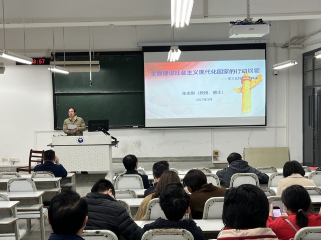 朱志刚教授以“全面建设社会主义现代化国家的行动纲领——学习党的二十大精神”为题,围绕大会简介,报告要点解读,奋斗新时代(报告第一部分),贯彻新思想(报告第二部分),擘画新蓝图(报告第三部分),启航新征程(报告第四-十五部分)六个方面为大家展开讲解。宣讲内容紧扣主题,语言通俗易懂,既有理论高度,又有思想深度,对与会人员深刻理解和准确把握党的二十大精神具有极强的针对性、指导性。