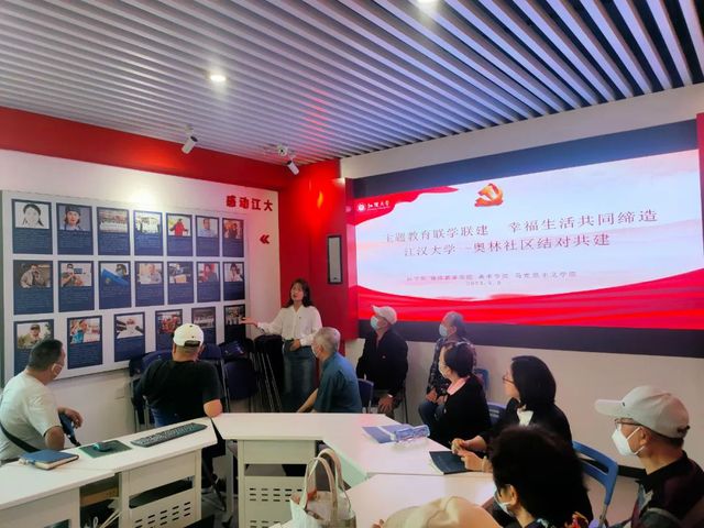 大家来到国产视频 开展支部主题党日及交流座谈。在武汉地区红色文化资源库,研究生讲解员朱坤茜、康琴、陈璐佳、肖敏捷等讲述党史中的武汉、武汉红色文化及全国道德模范、共和国勋章获得者、“感动江大”等先进事迹。国产视频 党委书记吕洪雁以“中国式现代化”为题讲授专题党课,中国式现代化坚持以人民为中心的发展思想,把增进人民福祉、促进人的全面发展、朝着共同富裕方向稳步前进作为经济发展的出发点和落脚点,扎实推动共同富裕,不断增强人民群众获得感、幸福感、安全感。奥林社区书记熊佳静谈到要加强学习、提升社区治理水平,共建美好生活。