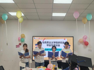 毕业生殷思、陈依静、时延玲、崔文静、蔡晶晶、王颖臻依次发言,向学院各位领导、老师的悉心栽培表示衷心的感谢与崇高的敬意。他们回忆了求学过程中的难忘时光,是热血赛场、团结拼搏;分享了三年的成长与收获,从初秋的满怀憧憬,到盛夏的满载而归。大家纷纷表示将始终践行“立德、致用、兼容、创新”的校训精神,牢记“马院姓马,在马言马”,在新时代新天地中施展抱负、建功立业,为母校争光。