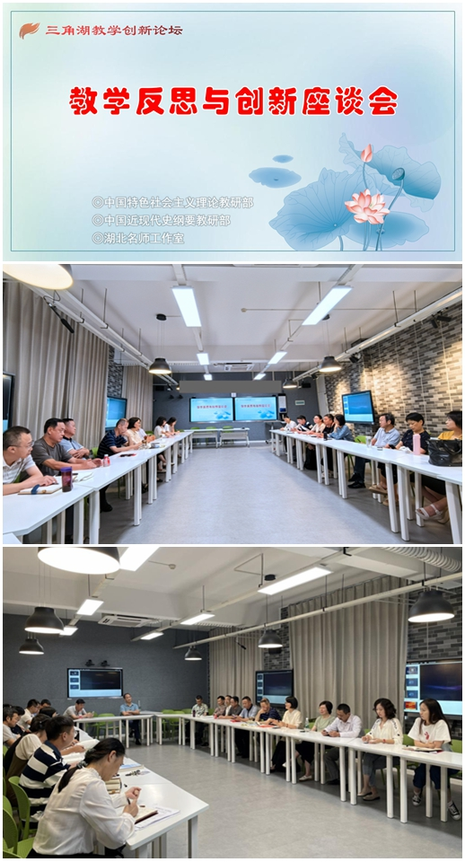 为更好地开展新学期思政课教学工作,提升思政课教学质量和水平,深入贯彻落实教育部党组《新时代高校思想政治理论课创优行动方案》关于“全面开展高校思政课教师‘手拉手’集体备课”要求,进一步提高思想政治理论课教学质量和育人实效,2023年9月14日下午,由中国特色社会主义理论教研部、中国近现代史纲要教研部和湖北名师工作室在J05B401智慧教室,联合举办“教学反思与创新座谈会”。座谈会由两个教研部主任张莉清、胡慧共同主持,院党委书记吕洪雁出席会议并发表讲话,各教研部全体教师参与。