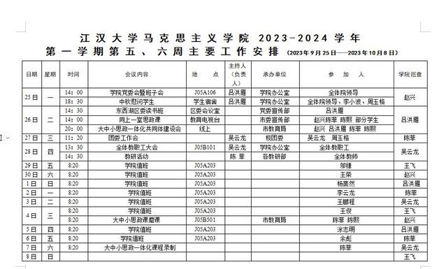 国产视频 2023-2024-1学期第五、六周安排