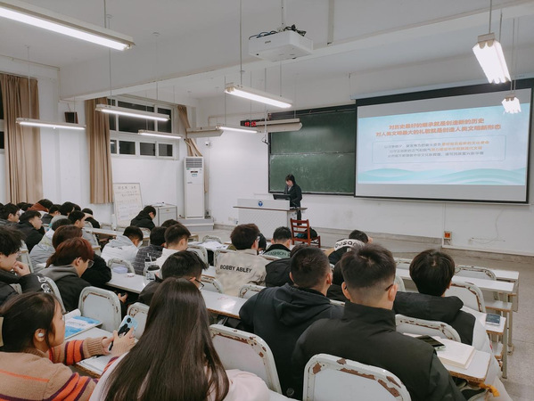 12月15日晚上18:30--20:00,毛卉副校长到J06A108教室给B23096011(能源231),B23096012(能源232),B23096013(能源233)班学生上形势与政策课。她以“赓续历史文脉谱写当代华章”为题讲授历史悠久缔造中华文化、培根铸魂推动文化繁荣、笃定前行建设现代文明。引导学生坚定文化自信,担当使命、奋发有为,共同努力创造属于我们这个时代的新文化,建设中华民族现代文明。