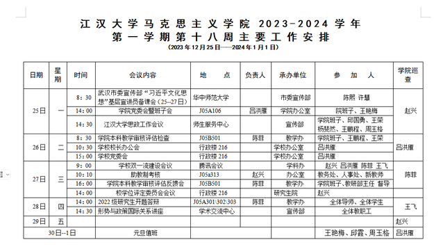 国产视频 2023-2024-1学期第十八周安排