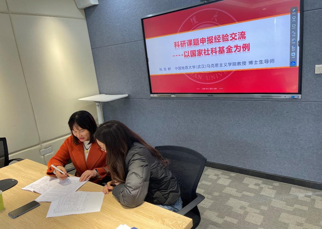 讲座结束后,韩美群教授随即结合自身国社科基金申报、评审工作的经历,与青年教师们进行了国社科基金项目申报的专项交流。她从选题有亮点,论证有内容,团队要多样等方面分享了申报书的撰写方法和技巧,并针对老师们的申报书进行了一对一辅导,建议切实具体。
