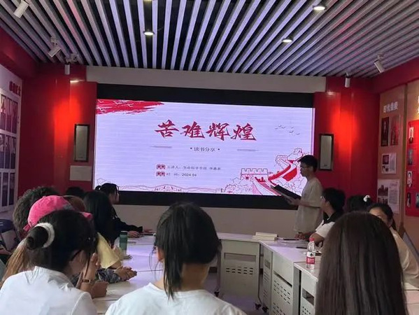 李嘉豪同学分享《苦难辉煌》,这部20世纪90年代初的著作记录了中国共产党自成立起15年的苦难史,使生活在转型期的中国那些思想动摇的人民坚定信仰。在开创复兴之路的今天,每一名党员都严格要求自己,始终保持优秀共产党员的先进性,是共同拥护党的事业、继往开来的重要保证。李嘉豪说:“一个人只为自己活着,再潇洒,也是渺小的;一个人为民族为人类活着,再平凡,也是伟大的!”