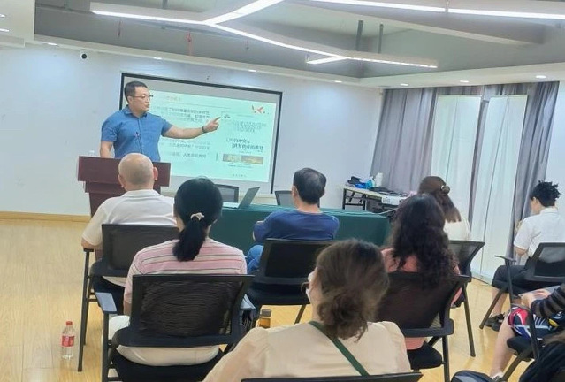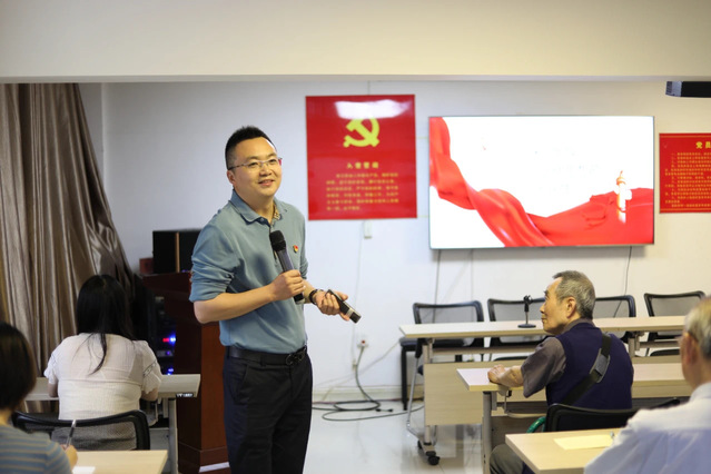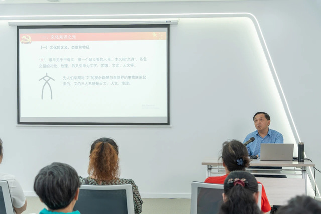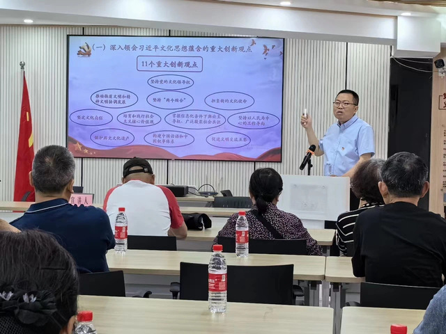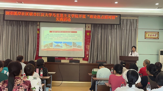 5月16日下午, 在汉阳区建桥街道钟家村社区文明实践站,邱国勇副教授深入解读了习近平文化思想的核心要义和实践要求,强调深入学习并践行这一思想,更好地推动社会进步、实现共同发展,共同创造更加美好的未来。
