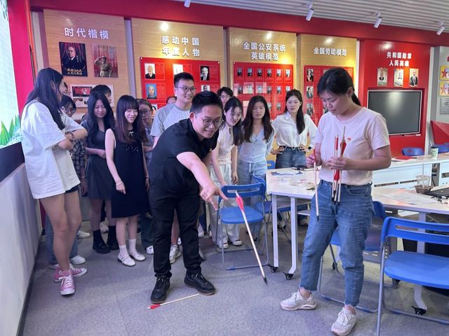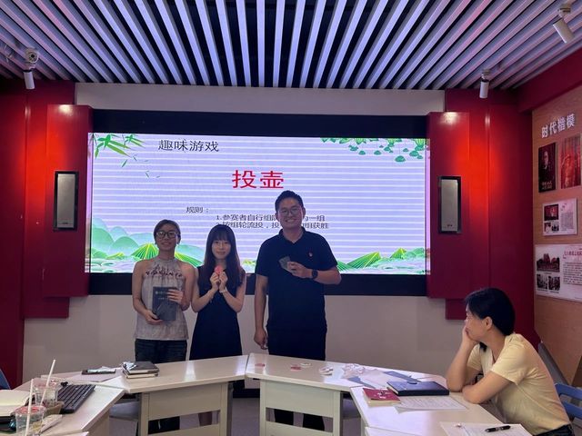 在热烈的气氛中,学生们展开了一场投壶比赛。投壶游戏是中国古代一种传统礼仪和宴饮游戏,历史悠久,文化底蕴深厚。大家纷纷跃跃欲试,现场气氛热烈而紧张。在场的学生分成10个小组,组与组之间开展投壶比赛,并决出前三甲。开展投壶比赛不仅增进了彼此之间的了解与友谊,也在轻松愉快的氛围中促进了支部团结。
