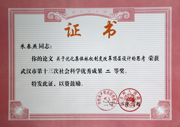 朱春燕教授论文获武汉市第十三次社会科学优秀成果二等奖