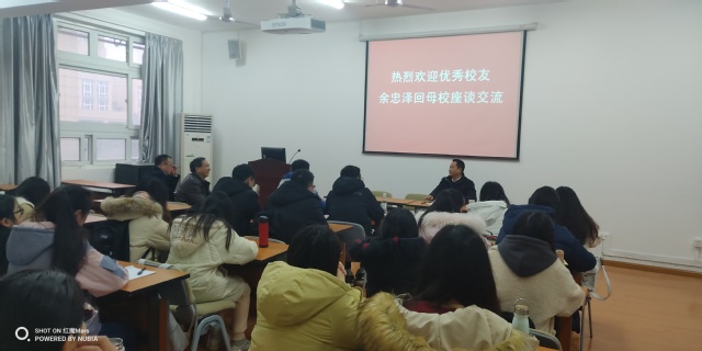 余忠泽学长随后结合自己的工作经历,和同学们进行了充分而深刻的经验分享。他从目标和方向、境界和规则以及红线和底线三个方面结合自己的实际工作和所见所闻所感,细致地向同学们解释。他提醒同学们在当前求学和将来工作中,要特别注意三个问题:一是要培养成长性思维;二是应积极融入社会;三是做工作的有心人。在谈到同学们怎么学习,如何思考,怎样实践的过程中,强调“四商”即智商、情商、德商和逆商的重要性,尤其要注意逆商的培养和锻炼。他鼓励同学们要不断提升自身能力,增强自信心。余忠泽学长在经验分享之后,又耐心细致地回答了同学们关于“价值体系如何构建?”“工作中如何处理两难选择”等问题。