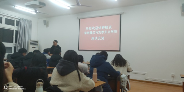 2020年1月3日下午17:30,2003级思想政治教育专业优秀校友李银霞回学院与思政班同学开展交流。校党委宣传部副部长、学院党总支副书记吕洪雁主持交流会,王飞老师和思想政治教育专业17级、18级学生参加了本次活动。