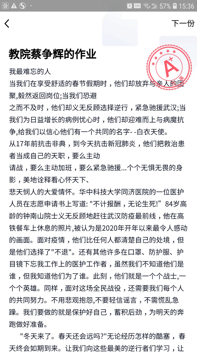 思想品德教研部结合《思想道德修养与法律基础》课程第三章“弘扬中国精神”的教育内容,在学生中开展“抗击疫情——最令我感动的人或事”主题爱国主义教育活动。