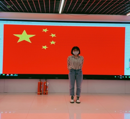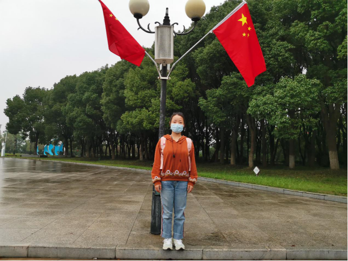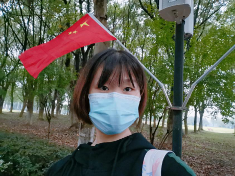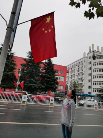 韩瑞芳:去年今日,今时今日,我都拍下了与国旗的合影。每每这时,我都在国旗下默默宣誓,将努力学习,认真生活,争取有一天能尽己之力,报效祖国。我相信每位青年人都有这样的觉悟,心有家国,方能担当大任。