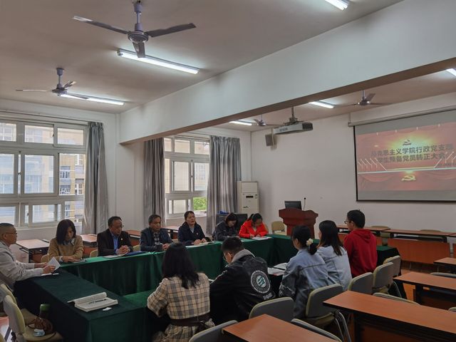 行政党支部全体党员和17级思政班班主任陈菲参会,包括行政