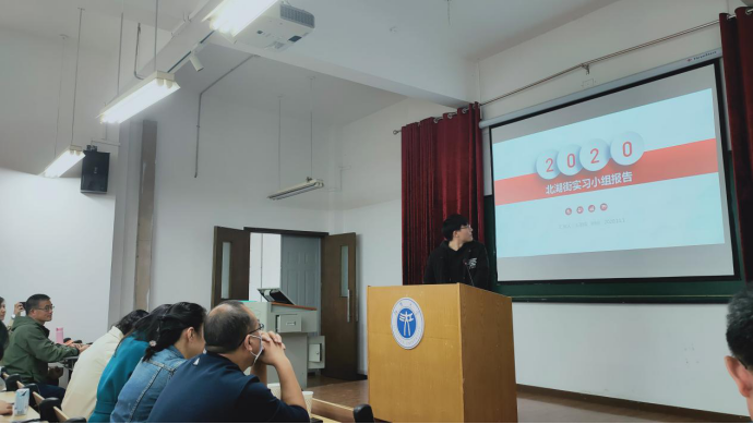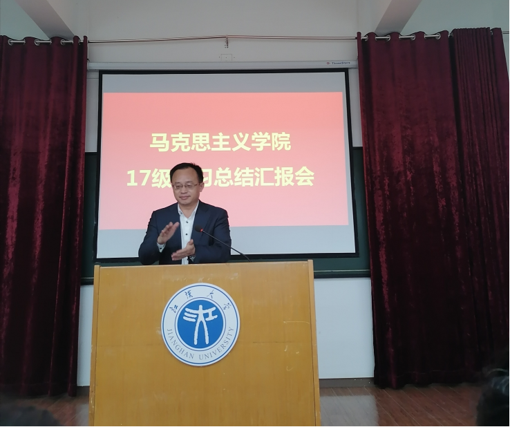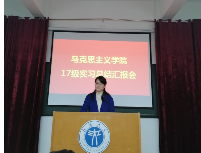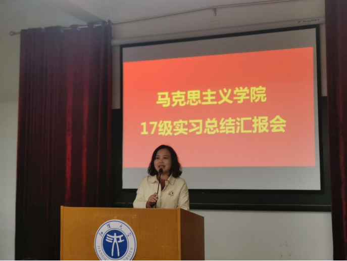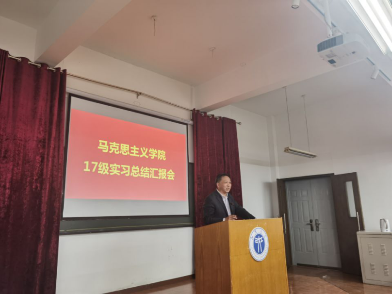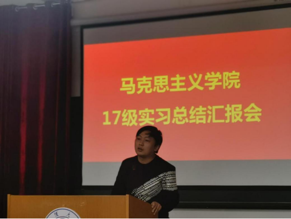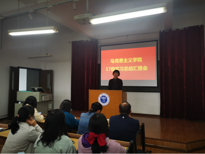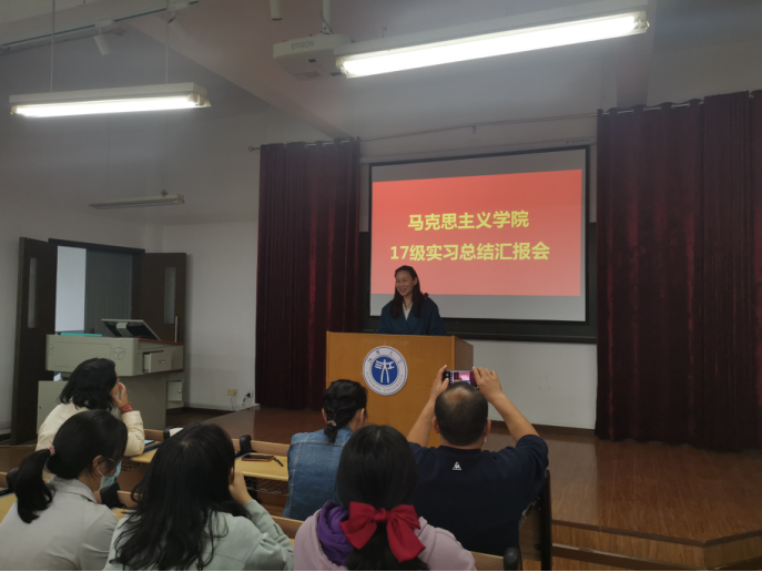 在J05A504教室举行17级思政专业学生毕业实习工作总结汇报会。