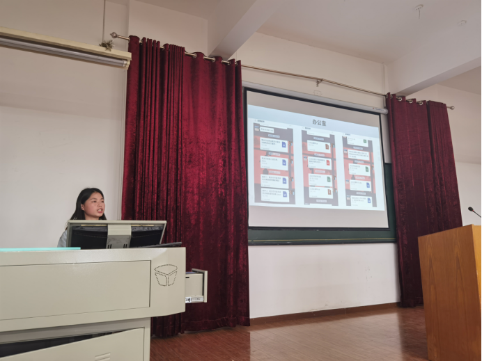 同学们制作的《实习生活》小视频播放后,胡慧、陈彬、叶云翔、王朋成几位同学分别代表各实习小组发言,汇报感受与收获,通过一个多月的实习,同学们收获了成长、友谊、责任和专业。