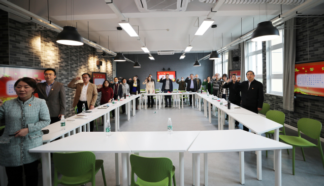 高海燕通报了参会人数及党费收缴情况,全体党员起立奏唱国歌、重温入党誓词,集中过政治生日、支委陈熙带领大家诵读党章,全体党员共同学习习近平总书记近期重要讲话精神和省市委及学校相关文件,高海燕为大家解读十九届五中全会精神。